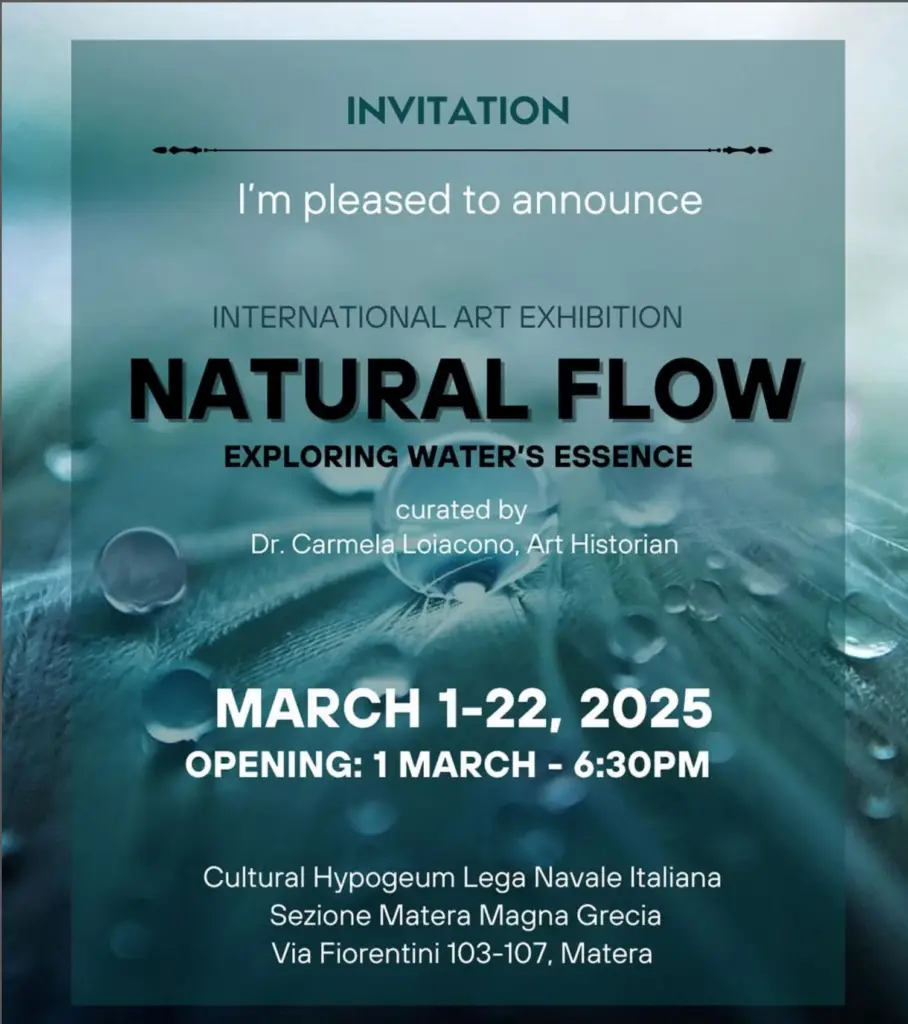 From the vision of seas, rivers and lakes to reflections on its conservation as a resource for the environment, the exhibition Natural Flow – Exploring water’s essence will explore the ways in which water can impact everyday life and inspire creativity. The artworks selected will celebrate the culture of water, the deep connection between art and this natural element without which we could not live.